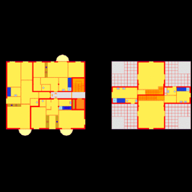 Lösungstyp: Hallen mit Mittelstützen und voll flexiblen Innenwänden bei freier Wahl der Lage der Fenster, die Grundrisse sind so entwickelt, dass die Installationen für alle möglichen Wohnungstypen – und auch Wohnungsgrössen – geeignet sind. Die Vielfalt der möglichen Wohnungstypen und Wohnungsrössen wurde erarbeitet.