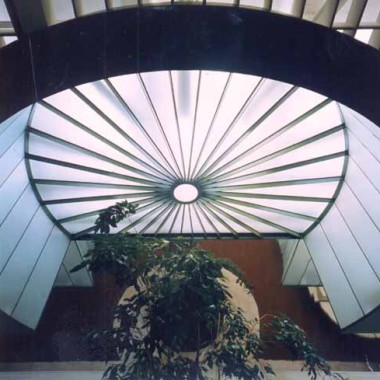 Aufgabenstellung: ein Kino war für die Zwecke der Bank zu adaptieren: Vordergebäude und der im Hof liegende Kinosaal sollten eine Einheit bilden. Insgesamt wurden drei Entwürfe ausgearbeitet, Erste Entwurf: Erhaltung des Kinoraumes in voller Höhe, keine Einbauten und abgehängten Decken, die Bausubstanz (hoher Kinosaal mit Satteldach) sollte gezeigt werden,… der zweite Entwurf wurde zu bauen begonnen, und während des Baues (und nach Vorlieben der gesicherten Finanzierung) vom Auftraggeber gestoppt. Die Glasdecke im Kinosaal kam nicht zur Ausführung Der Ausführungsentwurf hat abgehängte Decken, usw. und berückdichtigt /belässt die alten Straßenfassaden,…